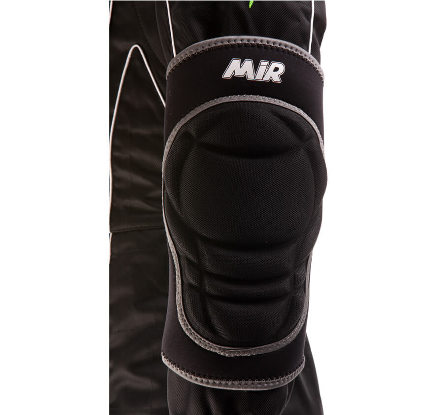 Made of stretch fabric, with impact protection in expanded polyurethane foam.